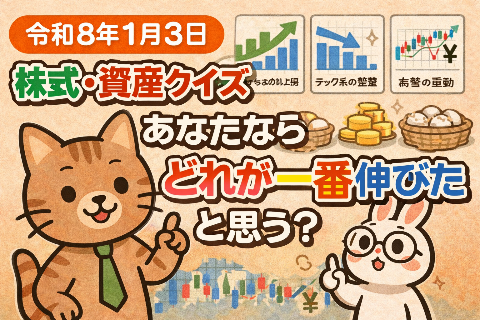 - 米国株(S&P500):2025年も堅調。AIやクラウド銘柄が牽引。ただFANG+単体は調整が入る局面あり。