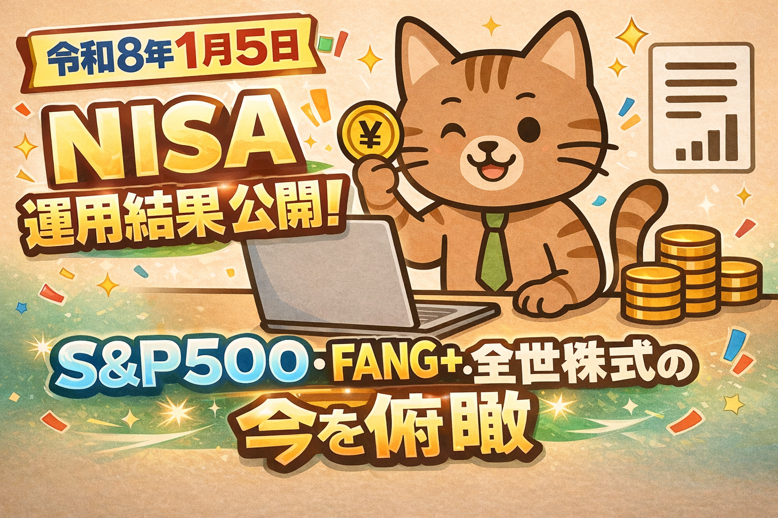 米国株中心の投信とFANG+関連指数、全世界株式も押さえて、リアルな損益・市場背景を共有します。