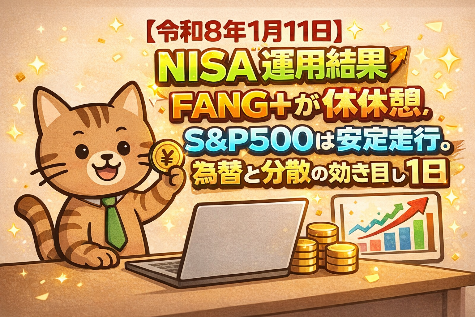 【令和8年1月11日】NISA運用結果|FANG+が休憩、S&P500は安定走行。為替と分散の効き目を実感した1日