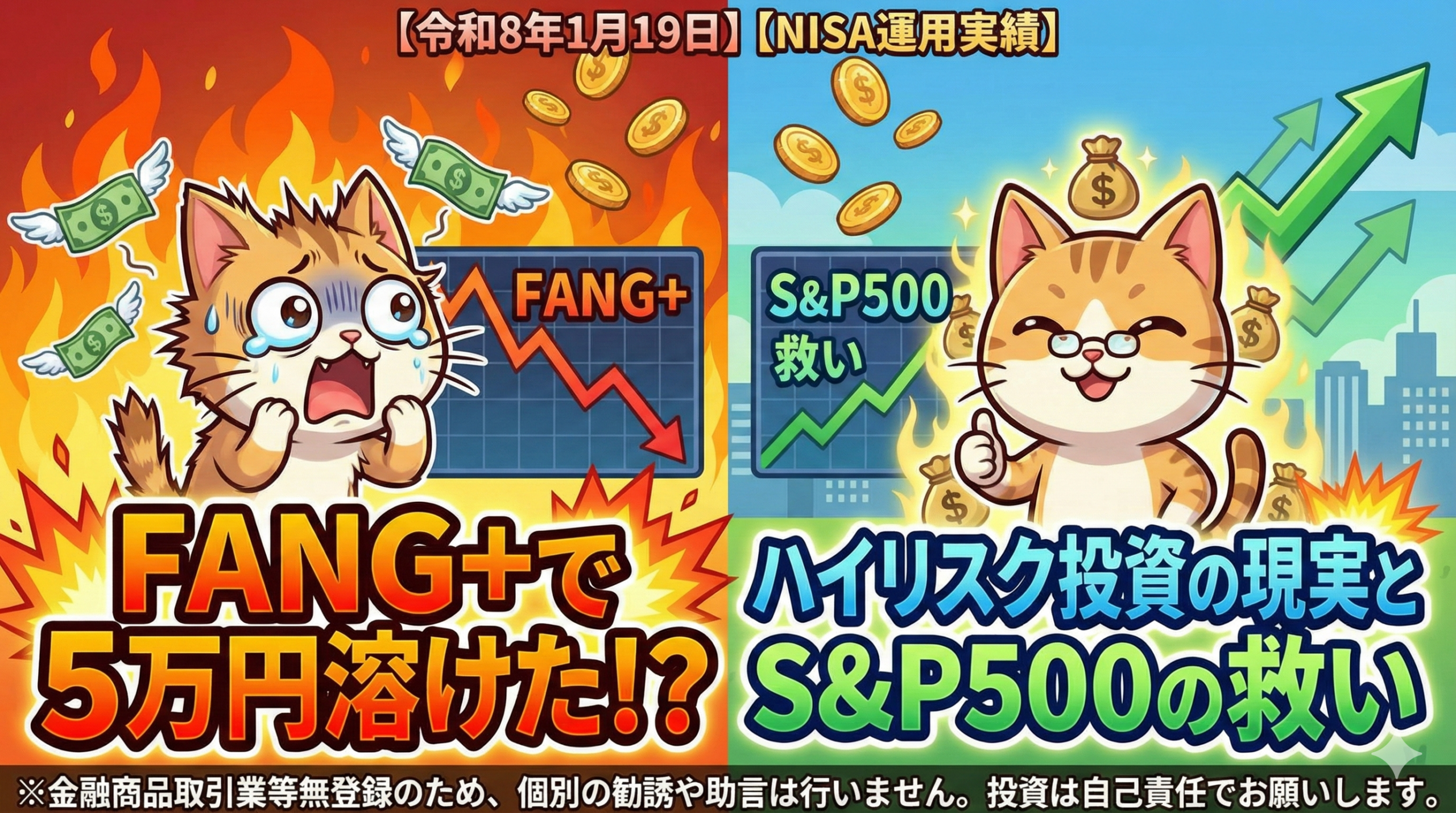 【令和8年1月19日】【NISA運用実績】FANG+で5万円溶けた!?ハイリスク投資の現実とS&P500の救い